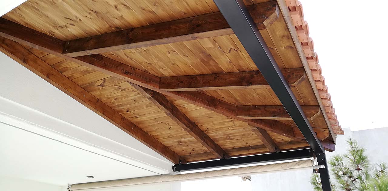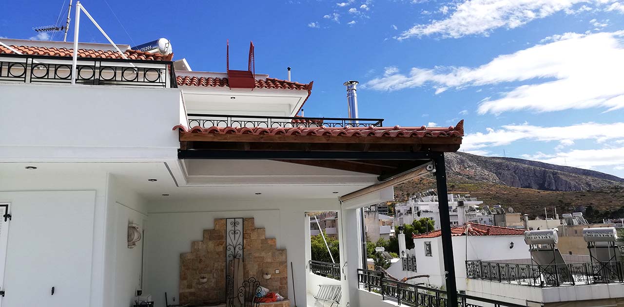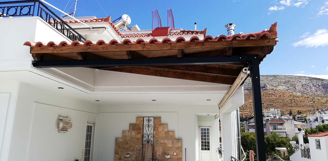 Κατασκευή σκέπαστρου σε βεράντα με πλανισμένη ξυλεία σε κατοικία στον Υμηττό.